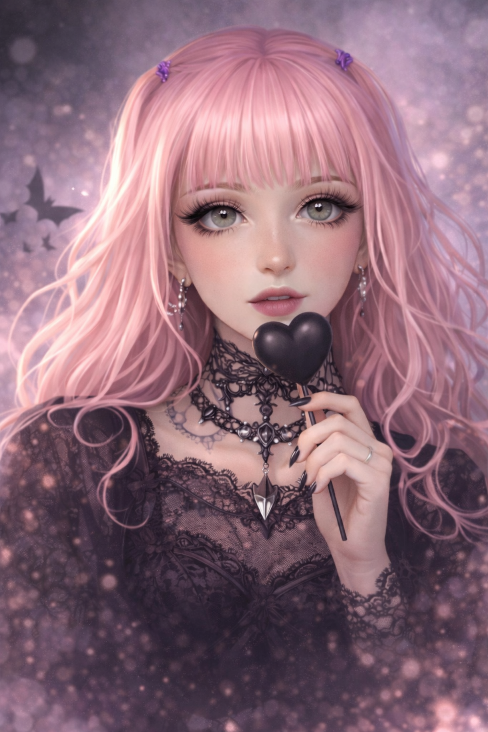 Une série de portraits aux tons roses et violets, inspirée par des poupées modernes et rêveuses.